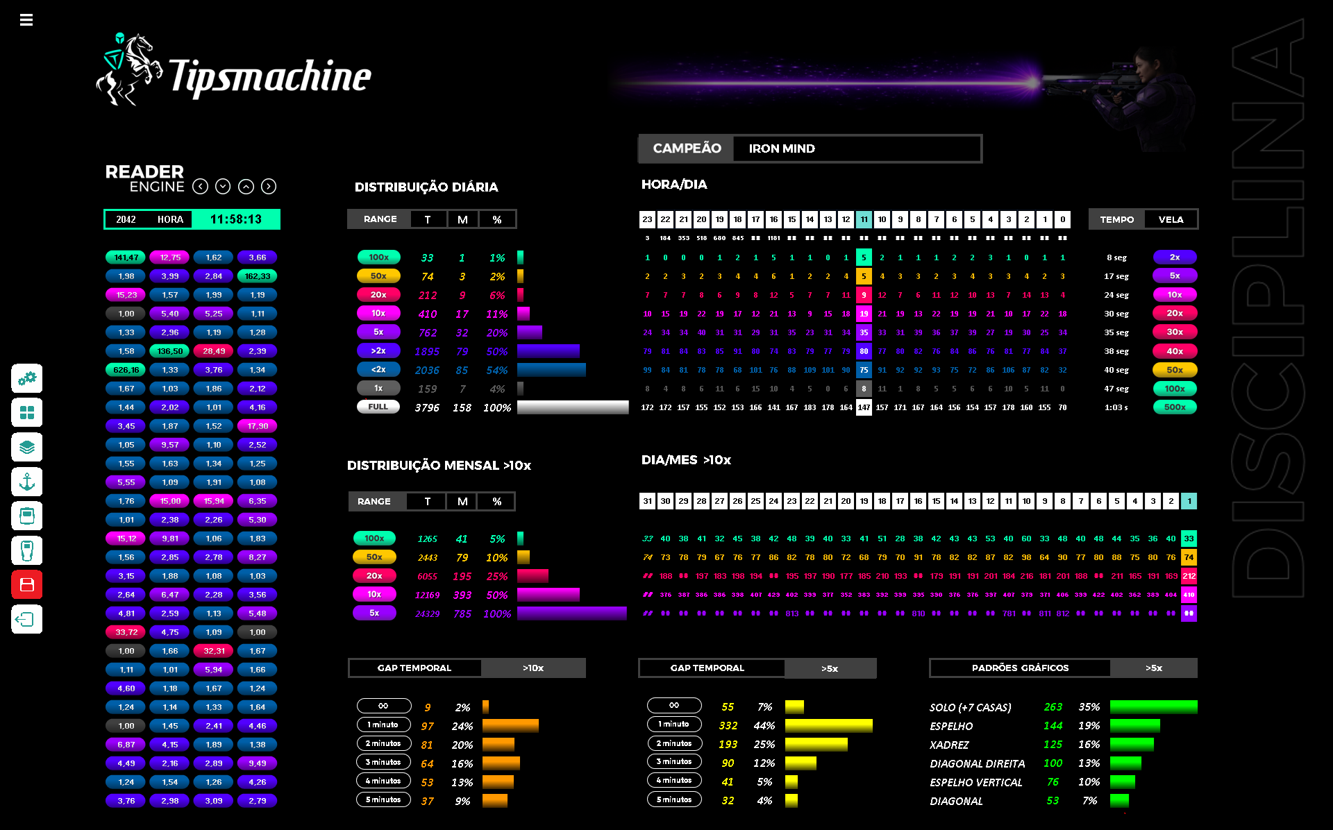 Ferramenta externa, não pertence ao nosso ecossistema. Fornece a matéria prima essencial: os historicos das rodadas. Todas as analises são feitas através da leitura dos arquivos importados do TIPMINER.
